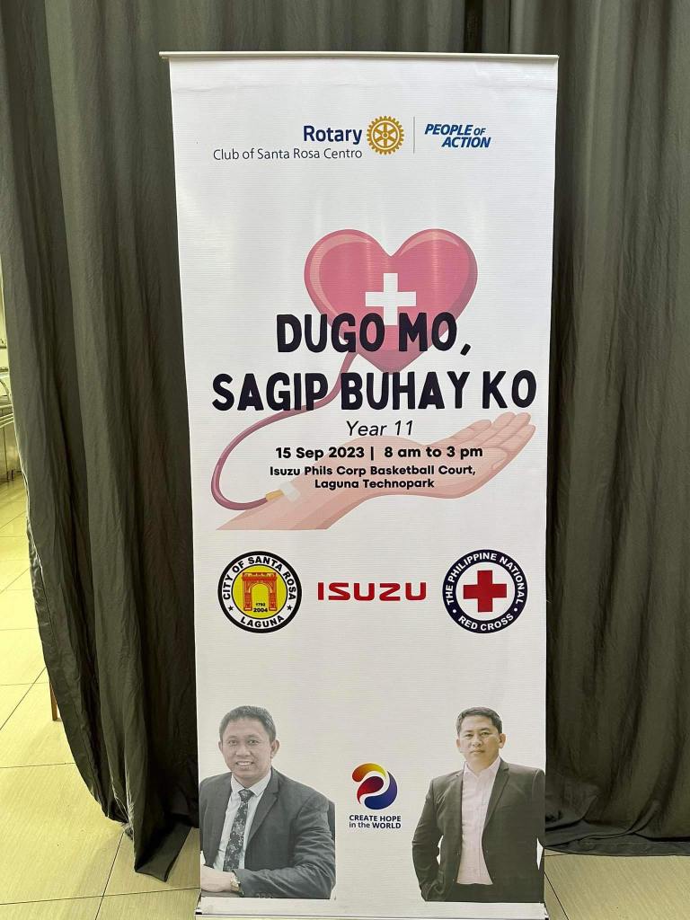 On its 11th year, the Rotary Club of Santa Rosa Centro in cooperation with the Philippine Red Cross (PRC) and Isuzu Philippines Corporation (IPC), held its “Dugo Mo, Sagip Buhay Ko” Blood Letting project. This worthy event was held last September 15, 2023 at Isuzu Philippines Corporation in Laguna Technopark.